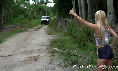 Petite blonde teen violently fucked and facialized in a van